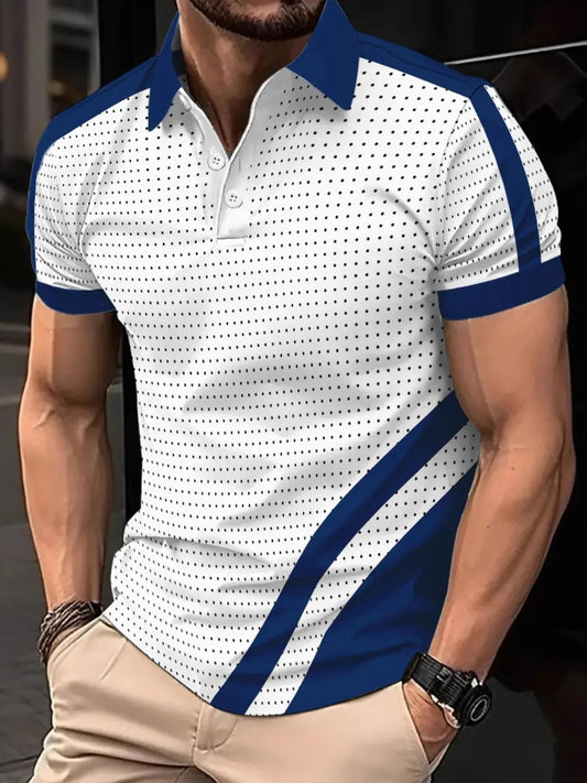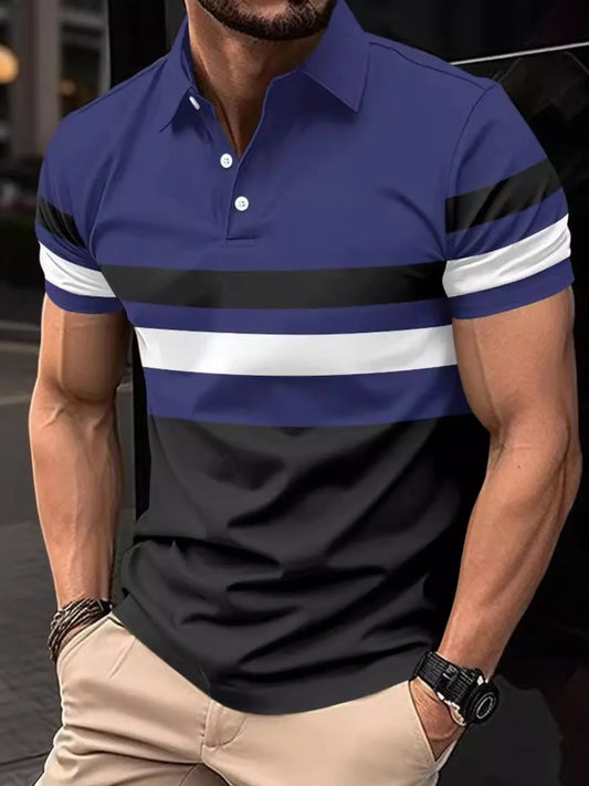 Men's Striped Collared Neck Short Sleeve Polo