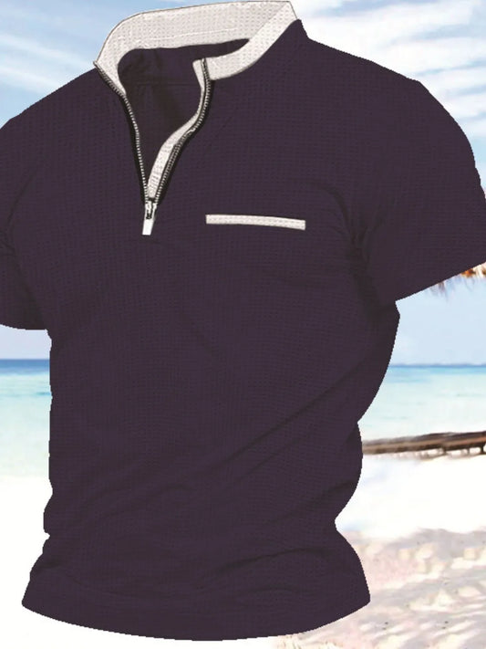 Men's Full Size Zip Collar Short Sleeve Polo