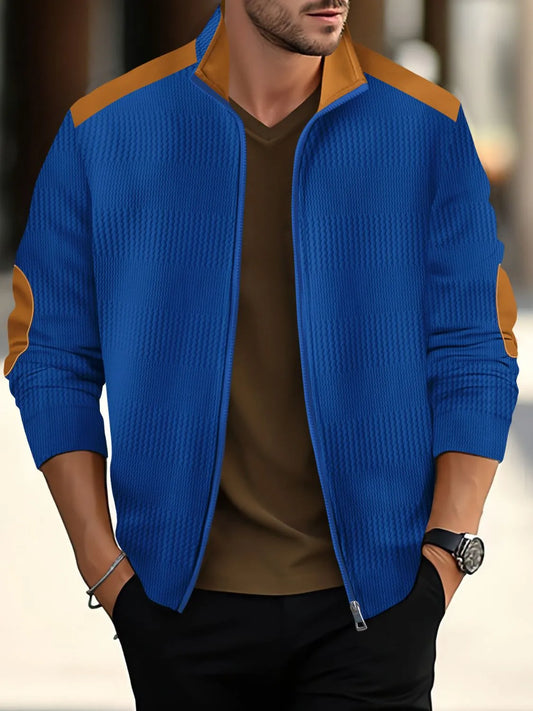 Men's Waffle Knit Baseball Collar Zip Up Jacket