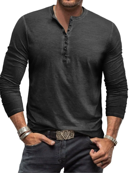 Men's Full Size Button Detail Long Sleeve Top