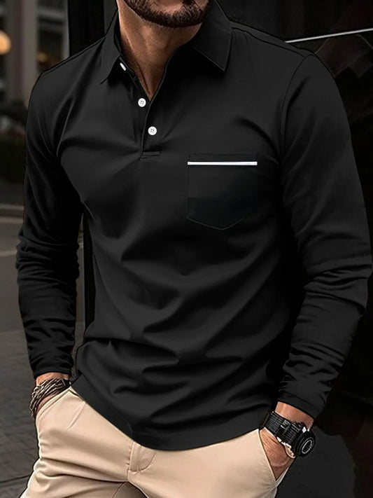 Men‘s Full Size Collared Neck Long Sleeve Polo